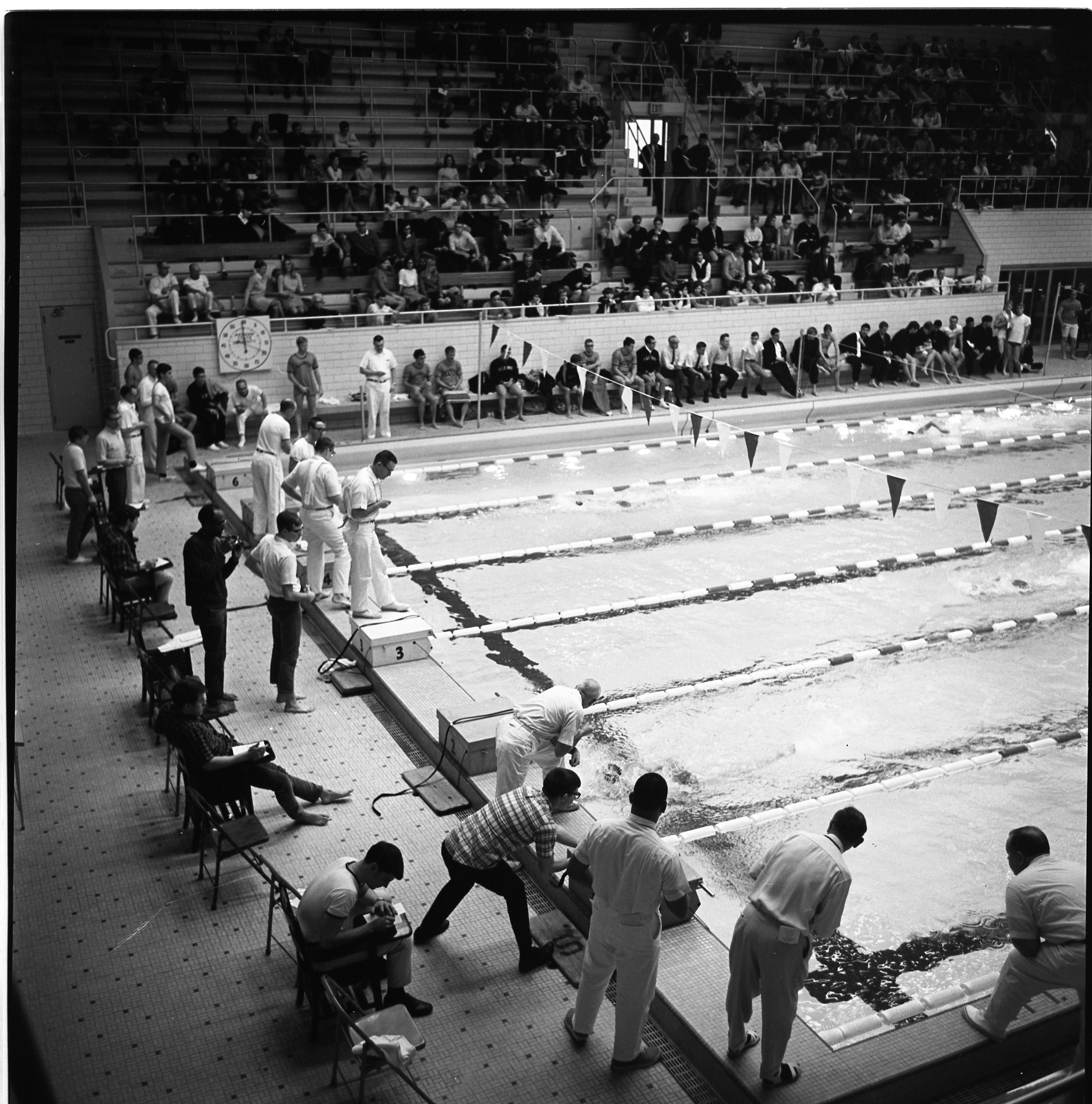 Mid-Race photograph during MSU vs. ILL. vs. Ohio Swim Meet