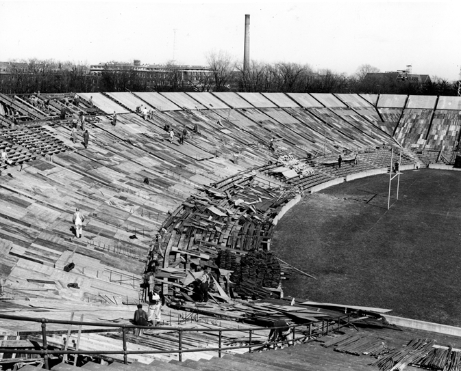 Title: Construction of Macklin Field stadium, 1948